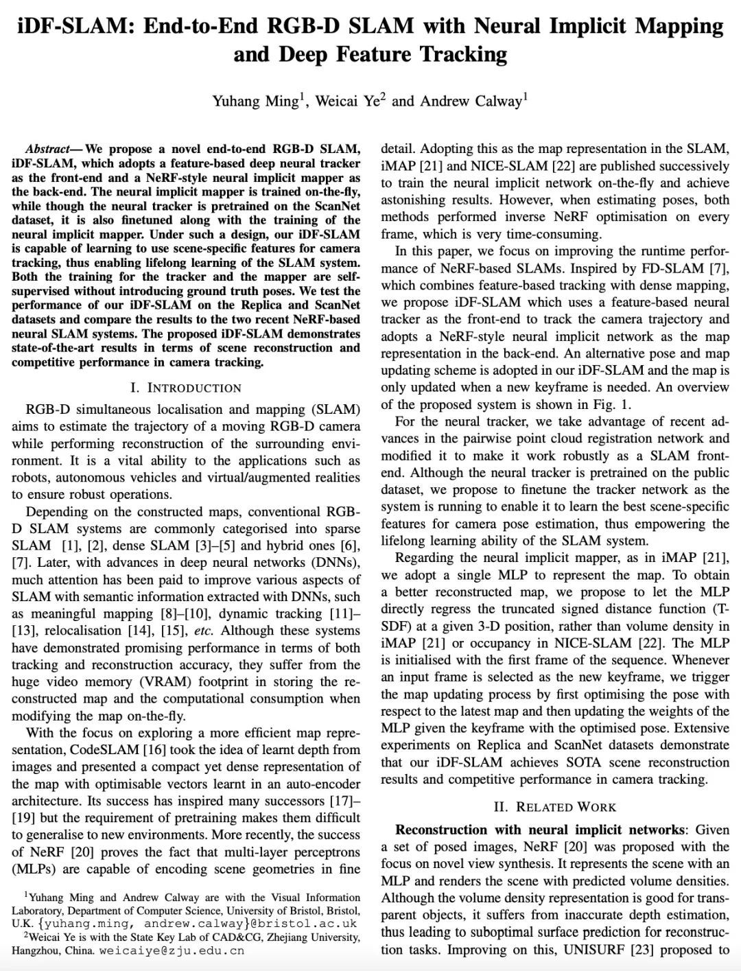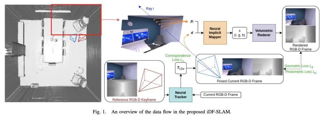 iDF-SLAM:基于神经隐映射和深度特征跟踪的端到端RGB-D SLAM