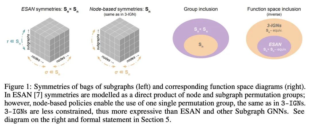 重新思考其对称性来理解和扩展子图GNN。子图GNN是最近一类具有表现力的图神经网络(GNN),它将图建模为子图的集合。到目前为止,可能的子图GNN架构的设计空间以及它们的基本理论属性在很大程度上仍未被探索。本文研究了最突出的子图方法的形式,采用了基于节点的子图选择策略,如自我网络或节点标记和删除。本文提出了两个核心问题:(1)这些方法表达能力的上限在哪里?(2)这些子图集上的等价消息传递层族是什么?本文回答这些问题的第一步是一种新的对称性分析,它表明为基于节点的子图集合的对称性建模需要一个比之前的工作中采用的对称组小得多的对称组。然后,这一分析被用来建立子图GNN和不变图网络(IGN)之间的联系。本文首先通过3-WL对子图方法的表达能力进行了限定,然后为子图方法提出了一个通用的消息传递层族,概括了以前所有基于节点的子图GNN。最后,设计了一种新的子图GNN,称为SUN,在理论上统一了之前的架构,同时在多个基准上提供更好的经验性能。