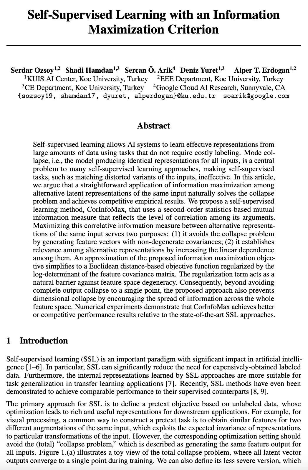 [LG] Self-Supervised Learning with an Information Maximization Criterion