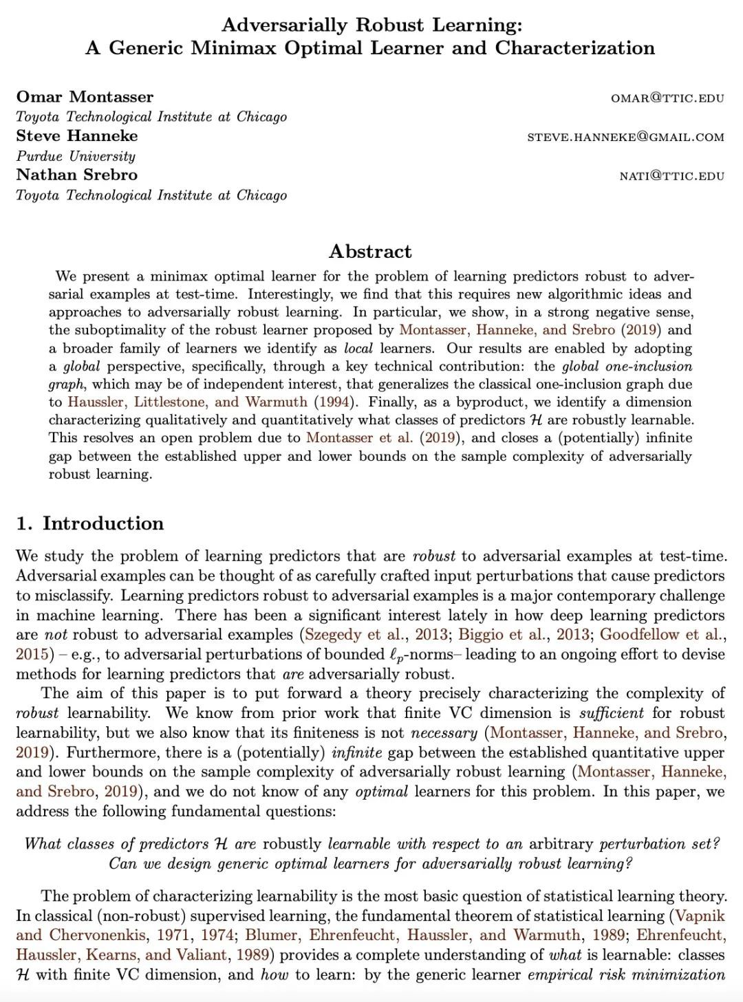 [LG] Adversarially Robust Learning: A Generic Minimax Optimal Learner and Characterization