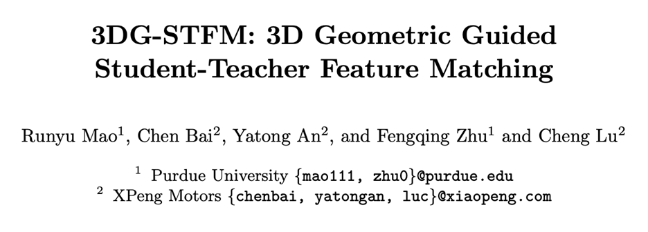 在本文中,作者采取了3DG-STFM来解决在一对图像之间寻找密集视觉对应的问题。3DG-STFM使用一种多模态匹配模型(教师)以在3D密集对应监督下加强深度一致性,并将知识转移到2D单峰匹配模型(学生)。教师和学生模型都由两个基于变压器的匹配模块组成,这些模块以从粗到精的方式获得密集对应。教师模型引导学生模型学习RGB诱导○的深度信息,以便在粗分支和细分支上进行匹配。文中还评估了3DG-STFM的模型压缩任务。3DG-STFM是第一种用于局部特征匹配任务的学生-教师学习方法。实验表明,文中的方法在室内和室外摄像机姿态估计和单应性估计问题上的性能优于最先进的方法。