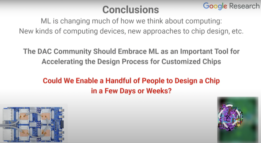 Google在这个领域已率先出发。在第58届DAC大会上,Google AI负责人Jeff Dean分享了《机器学习在硬件设计中的潜力》,他介绍了神经网络发展的黄金十年,机器学习如何影响计算机硬件设计以及如何通过机器学习解决硬件设计中的难题,并展望了硬件设计的发展方向。