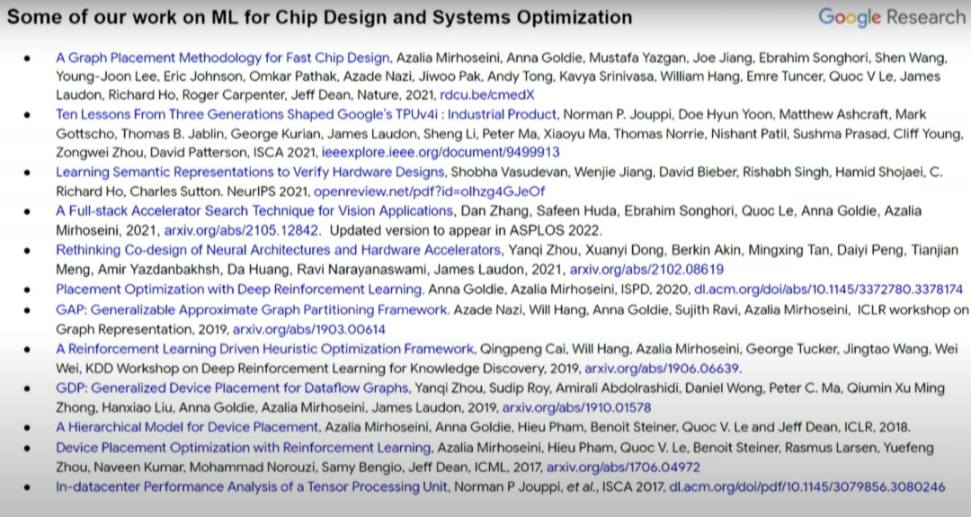 这是本次演讲的部分参考文献以及相关论文,主要涉及机器学习在芯片设计和计算机系统优化中的应用。