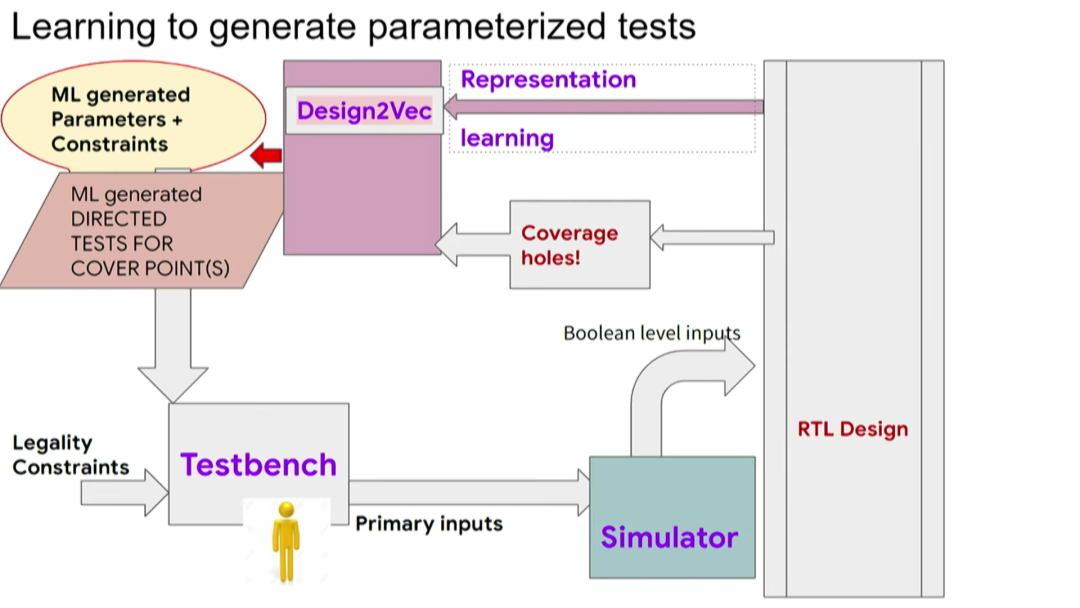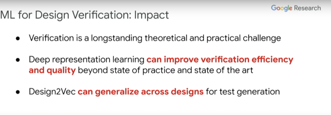 即使设计发生了一些改变,这个新设计的版本也能运用之前在众多设计上训练出来的系统,提高验证效率。正如在布局与布线阶段,经过训练后的算法即使面对新设计也能够预测不同测试的覆盖点,以带来好的结果。