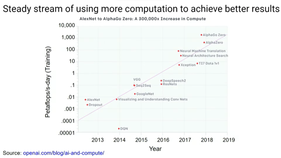 本科时,我写了一篇关于神经网络并行训练的论文,我认为如果可以使用64个处理器而不是一个处理器来训练神经网络,那就太棒了。然而事实证明,我们需要大约100万倍的算力才能让它真正做好工作。