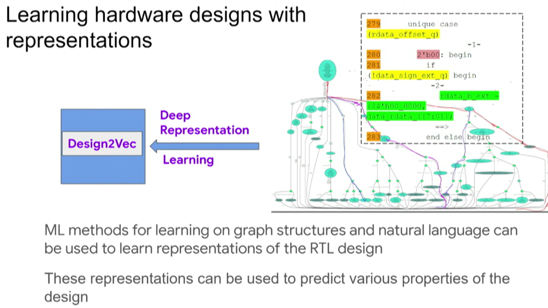 我们可以通过RTL将芯片设计抽象为一张图,然后运用基于图的神经网络去了解该图的特性,从而了解其对应芯片设计的特性,继而决定测试覆盖率和测试用例,这给了我们一个很好的设计的抽象表示。