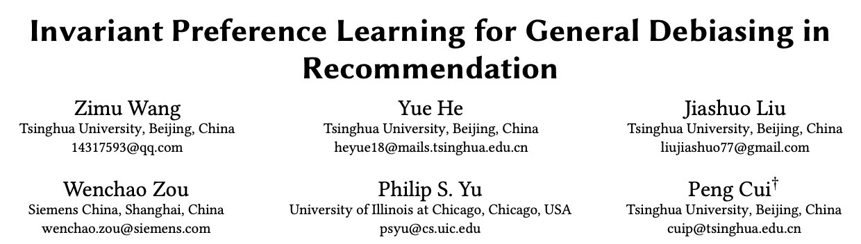 简介:目前的推荐系统在在线服务中取得了巨大的成功,例如电子商务和社交媒体。然而,它们在实际场景中仍然受到性能下降的影响,因为在用户行为的生成过程中总会出现各种偏差。尽管最近在解决一些特定类型的偏差方面取得了进展,但各种数据偏差,其中一些甚至是未知的,往往在实际应用中混杂在一起。尽管随机的(或无偏见的)数据可能有助于实现一般去偏的目的,但这样的数据要么很难获得,要么会产生高的实验成本。在本文中,我们考虑了一个更实际的环境,即我们的目标是仅用有偏的观察数据来进行一般去偏。我们假设观察到的用户行为是由不变的偏好(即用户的真实偏好)和变异的偏好(受一些未观察到的干扰因素影响)决定的。我们提出了一个新的推荐框架,称为InvPref,它通过估计不同类型的潜在偏见所对应的异质环境,从有偏见的观察用户行为中迭代分解出不变的偏好和变异的偏好。广泛的实验,包括一般去偏和特殊去偏的设置,验证了我们方法的优势。