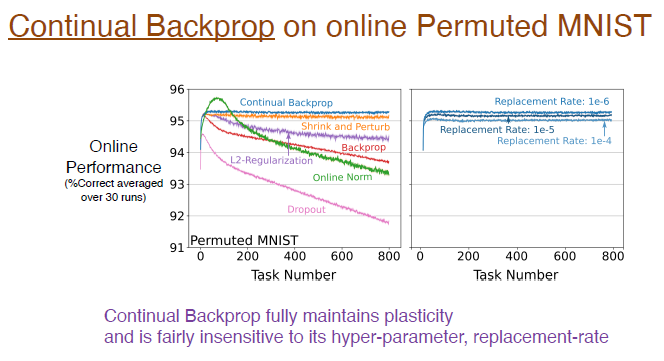因此,持续反向传播解决了 MNIST 数据集上可塑性缺失引发的全部问题。