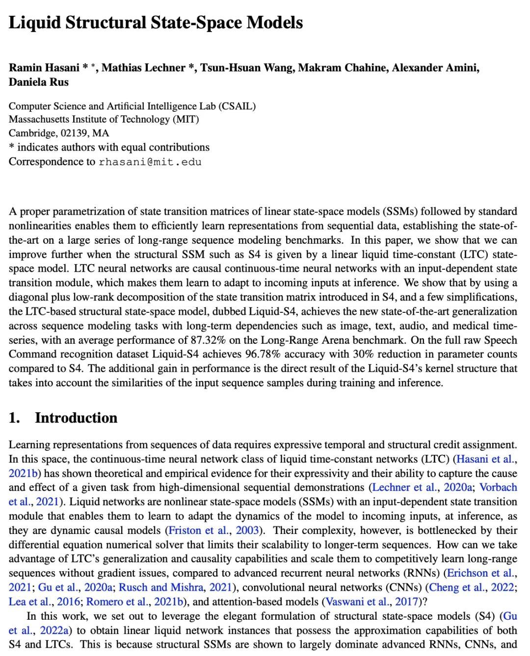 R Hasani, M Lechner, T Wang, M Chahine, A Amini, D Rus