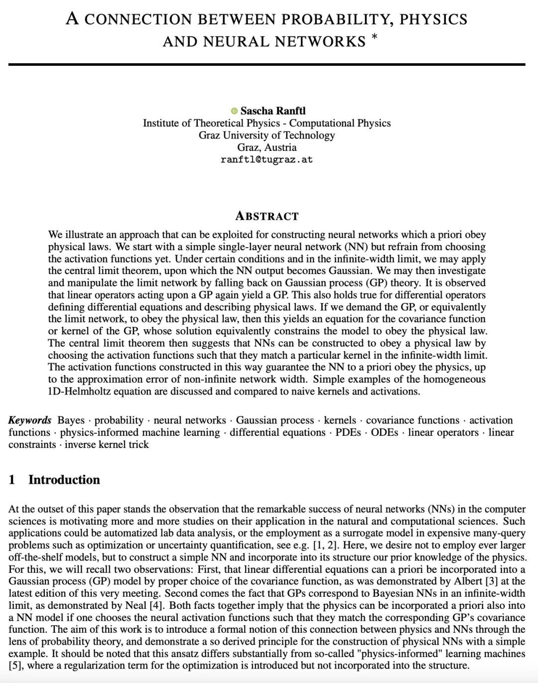 [LG] A connection between probability, physics and neural networks