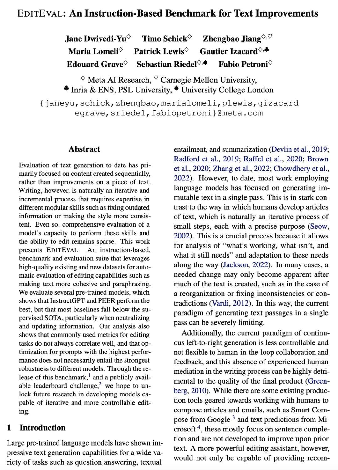 [CL] EditEval: An Instruction-Based Benchmark for Text Improvements