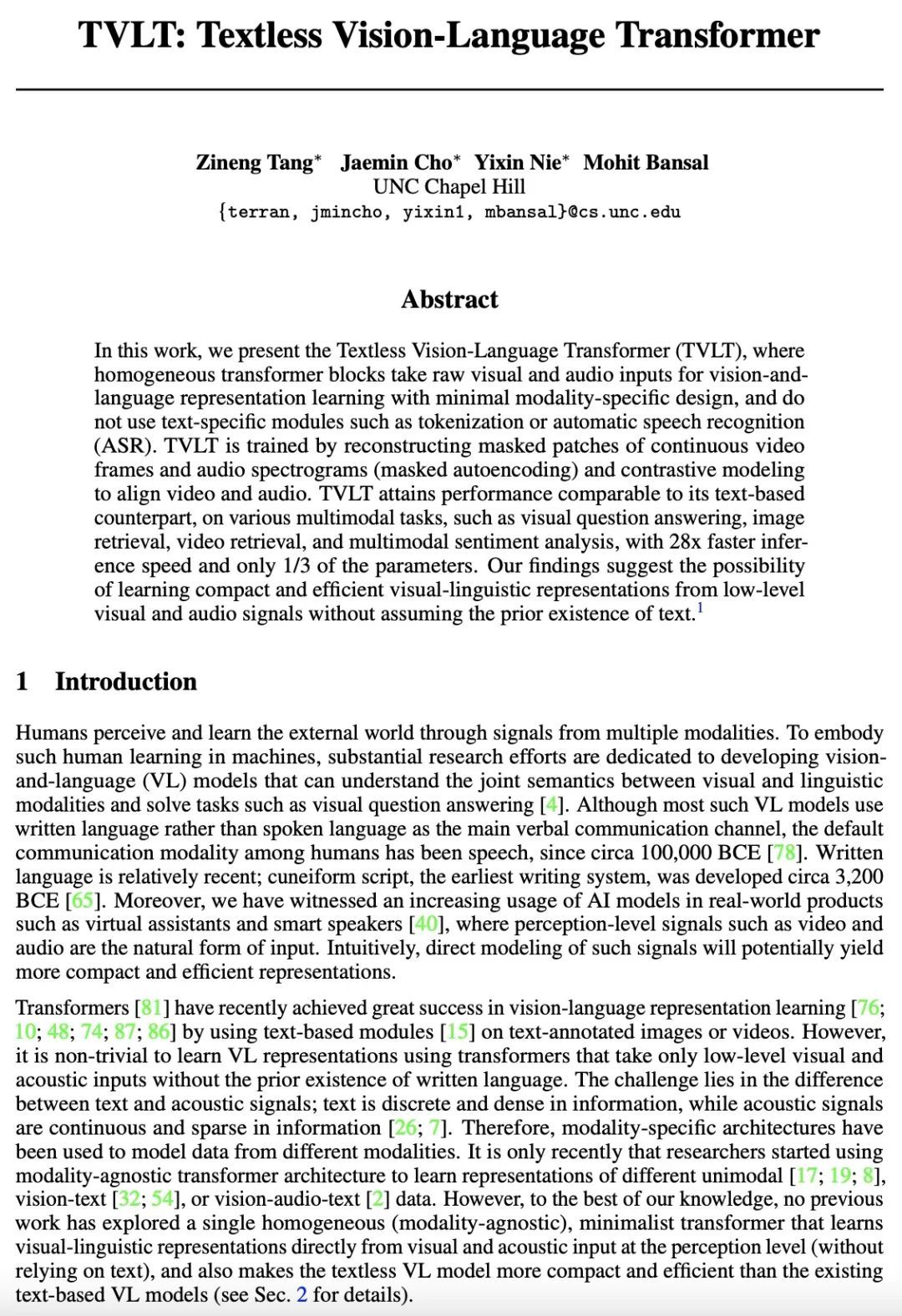 1、[CV] TVLT: Textless Vision-Language Transformer
