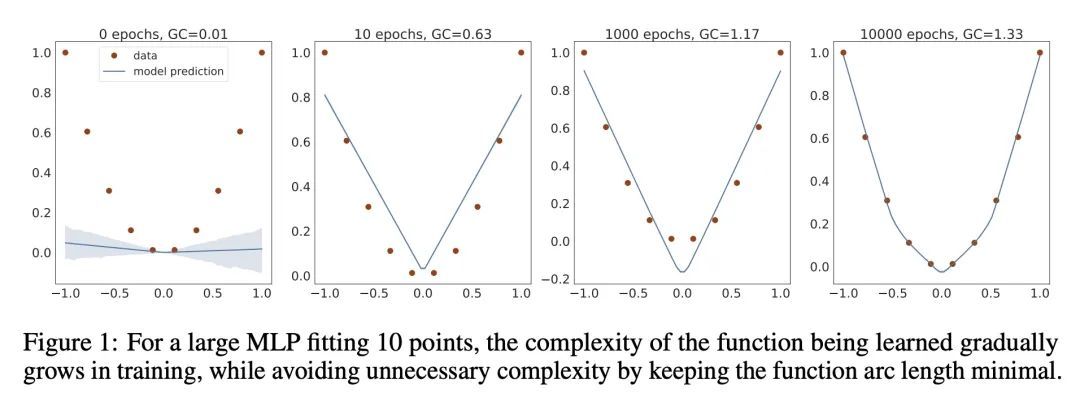 为什么神经网络找到简单解决方案:几何复杂度的正则化器。在许多情况下,更简单的模型比更复杂的模型更可取,控制这种模型的复杂度是机器学习中许多方法的目标,如正则化、超参数调整和架构设计。在深度学习中,一直很难理解复杂性控制的基本机制,因为许多传统的衡量标准并不自然地适用于深度神经网络。本文发展了几何复杂度的概念,它是对模型函数变异性的衡量,使用离散的Dirichlet能量进行计算。利用理论论证和经验结果的结合,本文表明许多常见的训练启发式方法,如参数正则化、频谱正则化、平坦性正则化、隐含梯度正则化、噪声正则化和参数初始化的选择都可以控制几何复杂度,提供一个统一的框架来描述深度学习模型的行为。