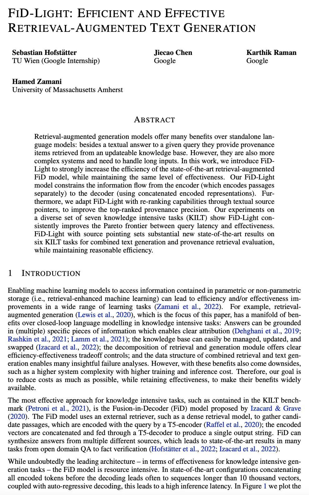 [CL] FiD-Light: Efficient and Effective Retrieval-Augmented Text Generation