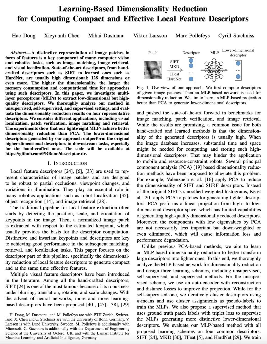 [CV] Learning-Based Dimensionality Reduction for Computing Compact and Effective Local Feature Descriptors