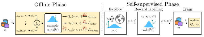 【推荐理由】离线元强化学习消除了持续提供奖励监督的需要,因为在生成离线数据集时必须只提供一次奖励。除了离线 RL 的挑战之外,元 RL 中还存在一个独特的分布转变:智能体学习探索策略,但适应策略不适应学习探索策略收集的数据分布。与在线设置不同,适应和探索策略不能有效地相互适应,导致性能不佳。本文提出了一种混合离线元强化学习算法,它使用带有奖励的离线数据对自适应策略进行元训练,然后收集额外的无监督在线数据,没有任何真实奖励标签,以解决这个分布偏移问题。此方法使用离线数据来学习奖励函数的分布,然后对额外的在线数据进行采样以自我监督奖励标签。通过消除为在线体验提供奖励标签的需要,可以更实用地用于手动提供奖励监督的环境中。