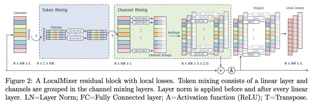 基于局部损失的前向梯度扩展。前向梯度学习计算的是一个有噪声的方向性梯度,在生物学上是一个替代反向传播深度神经网络学习的合理选择。然而,标准的前向梯度算法,当被学习的参数数量较多时,会出现高方差问题。本文提出一系列架构和算法的修改,这些修改使前向梯度学习在标准深度学习基准任务中变得实用。通过对激活而非权重进行扰动,有可能大幅降低前向梯度估计器方差。通过引入大量的局部贪婪损失函数(每个函数只涉及少量的可学习参数)和一个新的受MLPMixer启发的架构LocalMixer来进一步提高前向梯度的可扩展性,该架构更适合于局部学习。该方法在MNIST和CIFAR-10上与反向传播相匹配,并在ImageNet上明显优于之前提出的非反向传播算法。