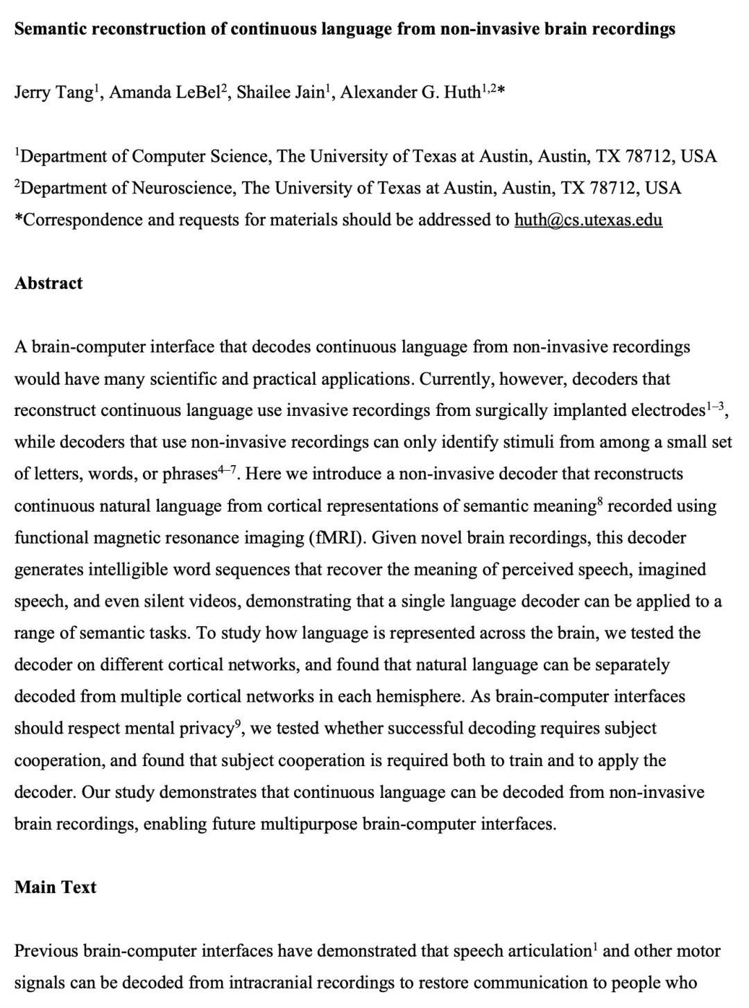 3、[LG] Semantic reconstruction of continuous language from non-invasive brain recordings