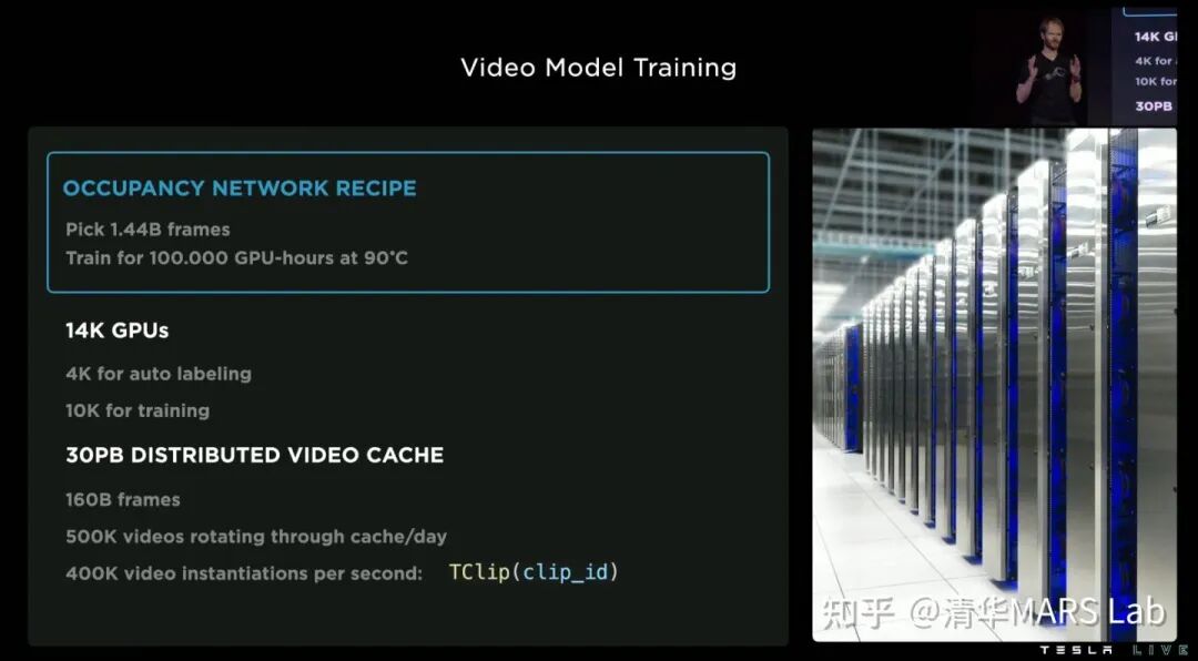 最后,我们简单说说特斯拉这一系列软件技术的基础,就是强大的基础设施。特斯拉的超算中心拥有14,000个GPU,共30PB的数据缓存,每天都有500,000个新的视频流入这些超级计算机。为了更高效地处理这些数据额,特斯拉专门开发了加速的视频解码库,以及加速读写中间特征的文件格式.smol file format。此外,特斯拉还自研了超算中心的芯片Dojo,我们在这里不做讲解。