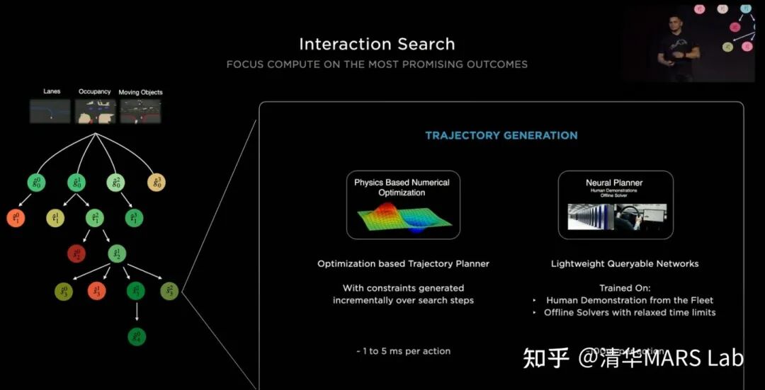 特斯拉把他们采用的规划模型叫做交互搜索(Interaction Search),它主要由三个主要步骤组成:树搜索,神经网络轨迹规划和轨迹打分。