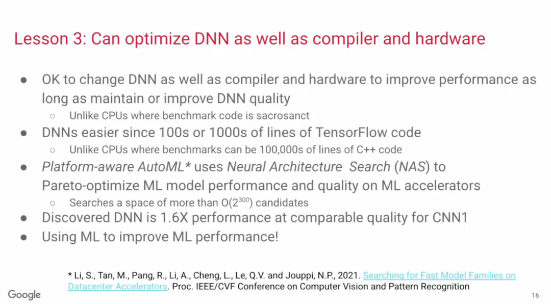 对ML工程师而言,只要可以让模型跑得更好,他们非常愿意根据硬件/编译器改进DNN模型。毕竟DNN模型不像GCC编译器,后者已成为被广泛采纳的编译器标准,不会轻易根据硬件改动。