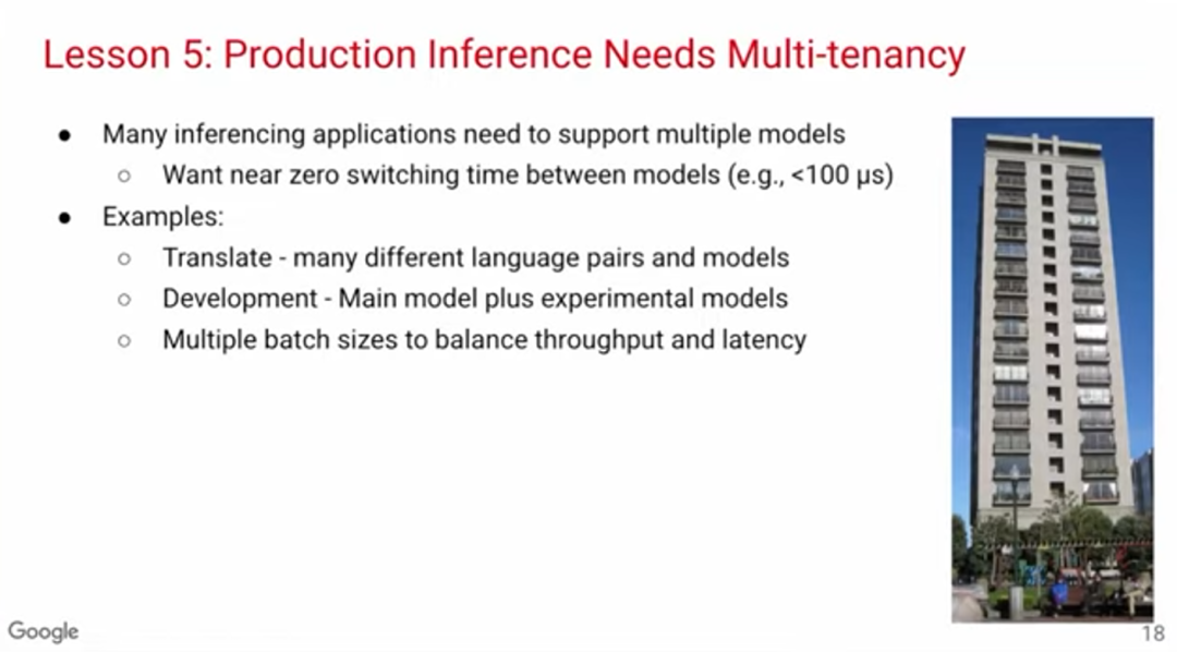DNN需要使用多租户技术(multi-tenancy)。不少深度学习论文的一个假设是同一时间只需运行一个模型,但在实际应用中,有不少情况都需要在不同模型中切换。