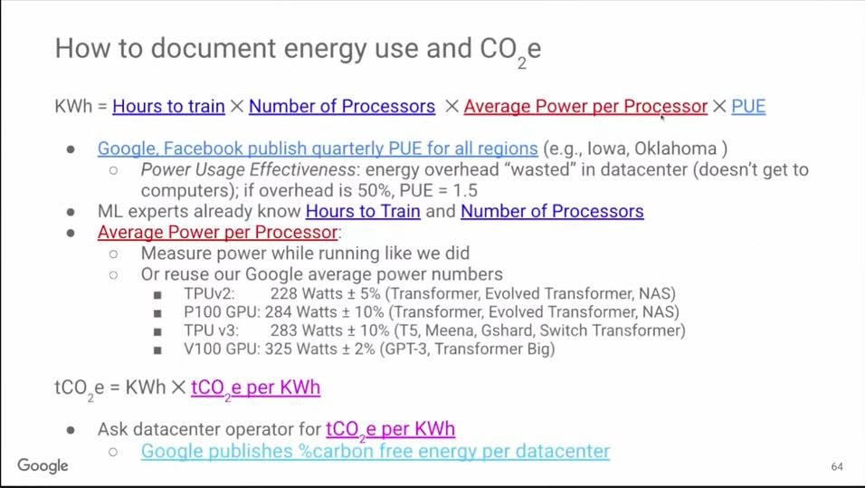 Google研究了ML硬件的能源消耗。不同于全生命周期消耗的能源(包括从芯片制造到数据中心构建的所有间接碳排放),我们只关注硬件运行时的能源消耗。