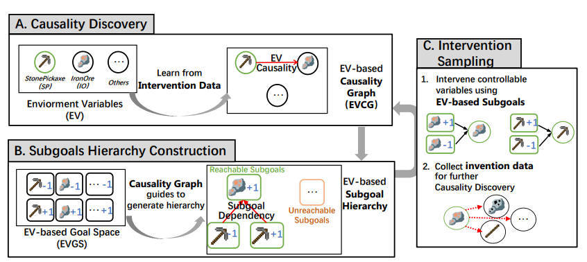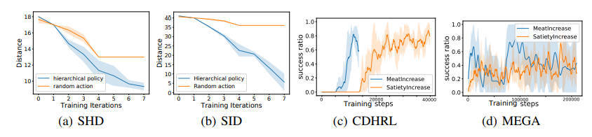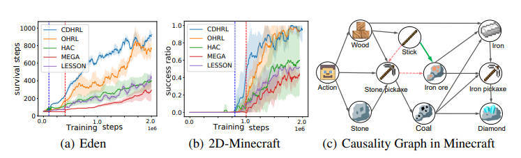【推荐理由】分层强化学习(HRL)在高质量层次结构(如子目标或选项)的指导下,有效地提高了智能体在稀疏奖励任务中的探索效率。然而,如何自动发现高质量的层次结构仍然是一个巨大的挑战。以往的HRL方法利用随机驱动的探索范式,由于探索效率低,难以发现复杂环境中的层次结构。为了解决这一问题,此文提出了CDHRL,一种因果驱动的层次强化学习框架,利用因果驱动的发现而不是随机驱动的探索,在复杂环境中有效地构建高质量的层次结构。关键见解是,环境变量之间的因果关系自然适合建模可达子目标及其依赖关系,可以完美指导构建高质量的层次结构。在2D-Minecraft和Eden这两个复杂环境中的结果表明,CDHRL使用因果驱动范式显著提高了探索效率。