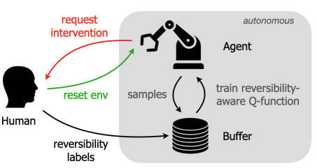 【推荐理由】强化学习的一个长期目标是设计可以在世界上自主交互和学习的智能体。这种自主性的一个关键挑战是存在需要外部帮助才能恢复的不可逆状态,例如当机器人手臂将物体从桌子上推下时。虽然标准智能体需要持续监控来决定何时进行干预,但本文的目标是设计能够仅在需要时请求人工干预的主动智能体。为此,本文研究者提出了一种算法,该算法可以有效地学习检测和避免不可逆状态,并在智能体进入这些状态时主动寻求帮助。在一组具有未知不可逆状态的连续控制环境中,实验发现与现有方法相比,文中提出的算法表现出更好的样本和干预效率。