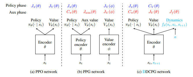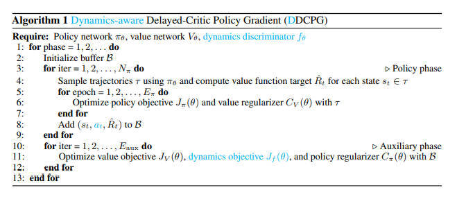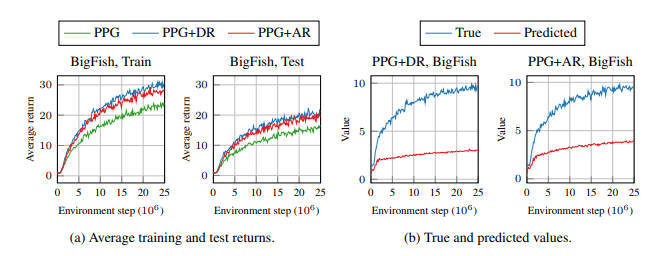 【推荐理由】研究人员专注于在多个训练环境中训练 RL智能体以提高观察泛化性能的问题。在现有方法中,策略网络和价值网络分别使用不相交的网络架构进行优化,以避免干扰并获得更准确的价值函数。本文研究者发现,与传统的单环境设置相比,多环境设置中的价值网络更难优化,并且更容易过度拟合训练数据。此外,研究人员发现需要对价值网络进行适当的正则化才能获得更好的训练和测试性能。为此,本文提出了延迟批评策略梯度(DCPG),它通过使用比策略网络更多的训练数据更频繁地优化价值网络来隐式惩罚价值估计,这可以使用共享网络架构来实现。此外,本文研究者引入了一个简单的自我监督任务,该任务使用单个鉴别器学习环境的正向和反向动态,可以与价值网络联合优化。实验表明本文提出的算法显著提高了 Procgen基准测试中的观察泛化性能和样本效率。