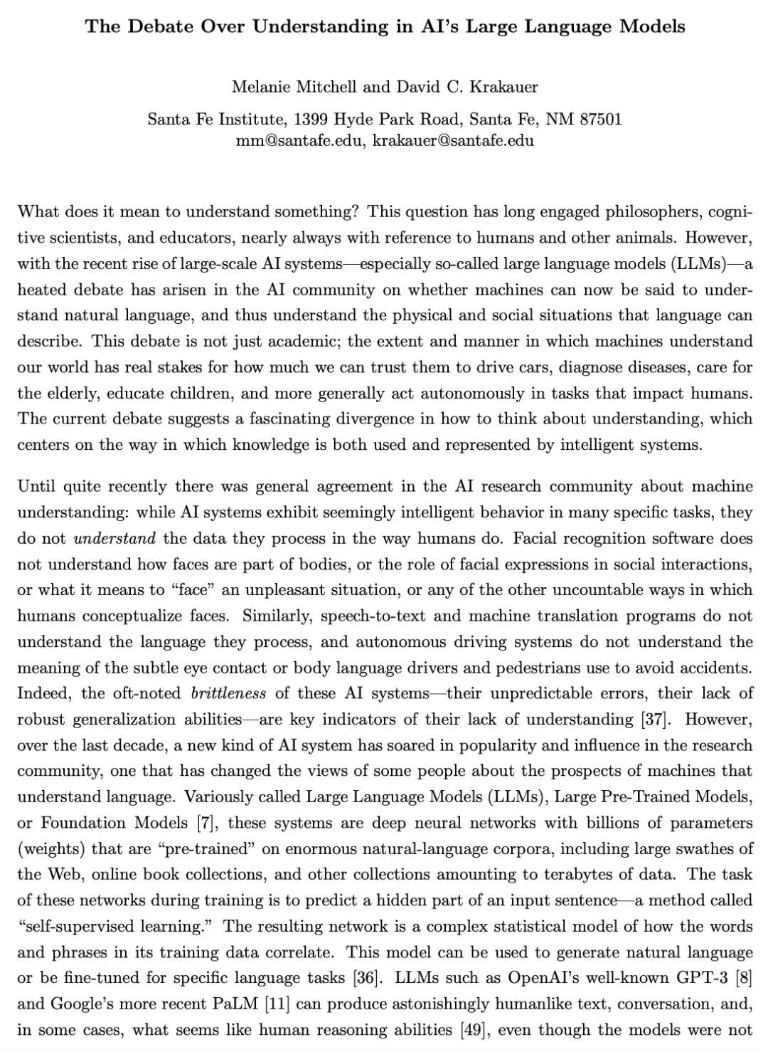[LG] The Debate Over Understanding in AI's Large Language Models