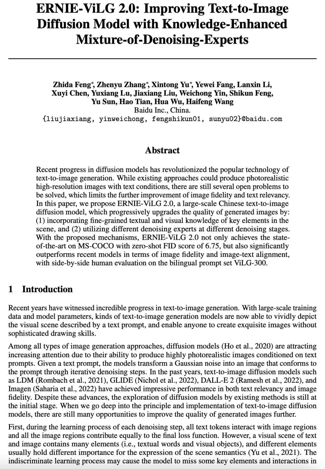 [CV] ERNIE-ViLG 2.0: Improving Text-to-Image Diffusion Model with Knowledge-Enhanced Mixture-of-Denoising-Experts