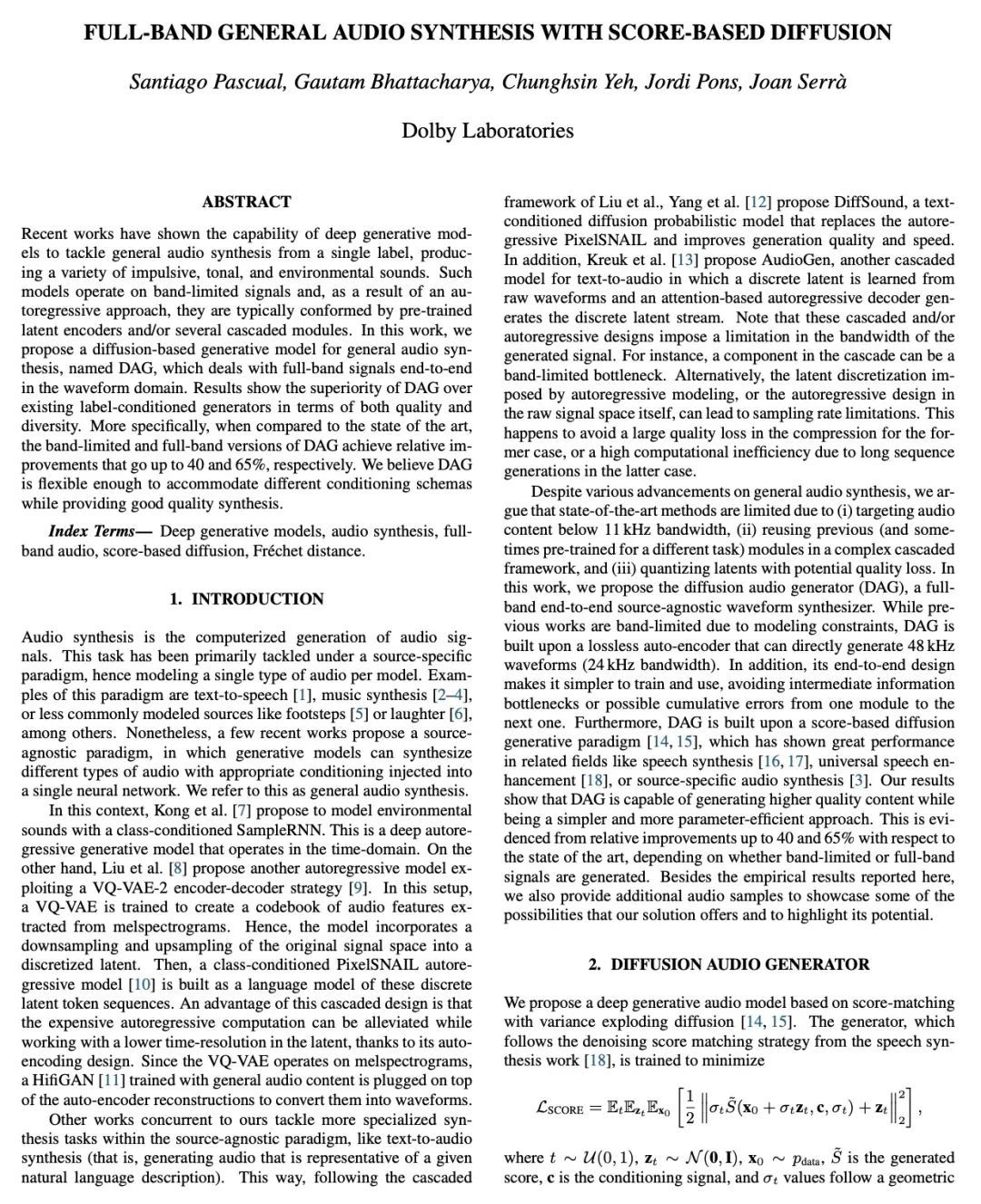1、[AS] Full-band General Audio Synthesis with Score-based Diffusion