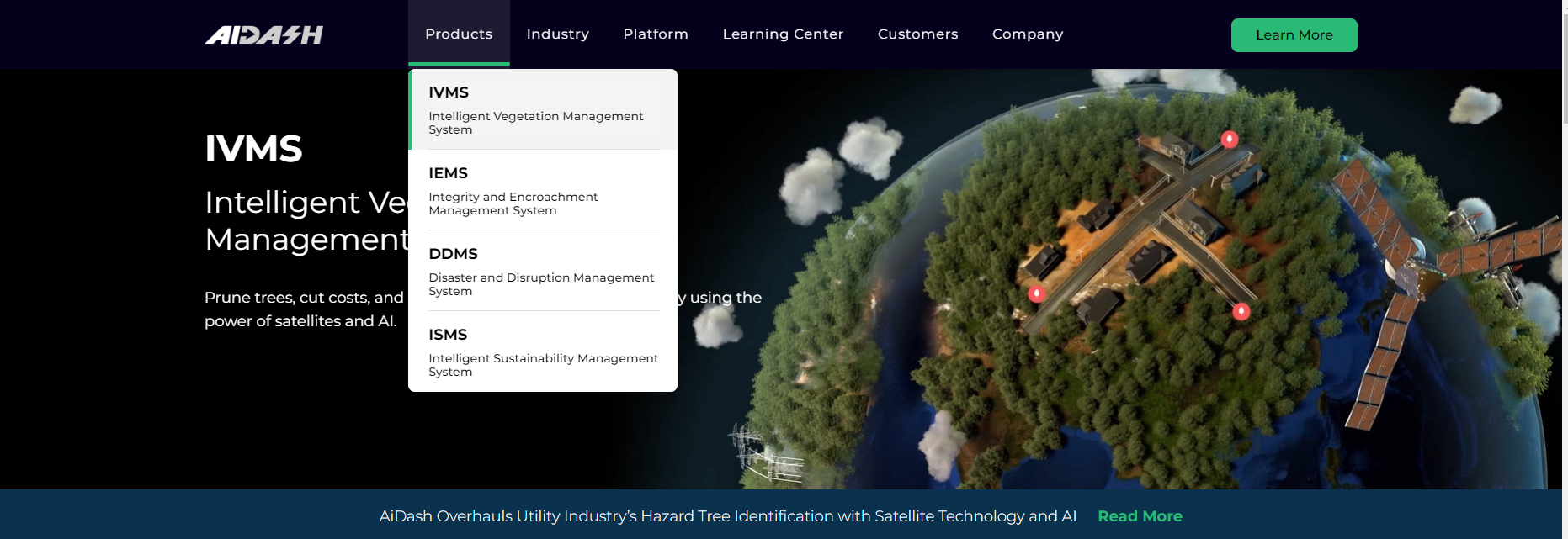 根据AiDash的官网显示,目前拥有IVMS,IEMS,以及DDMS和ISMS等产品。服务于电力,能源等行业以及部分非盈利行业。