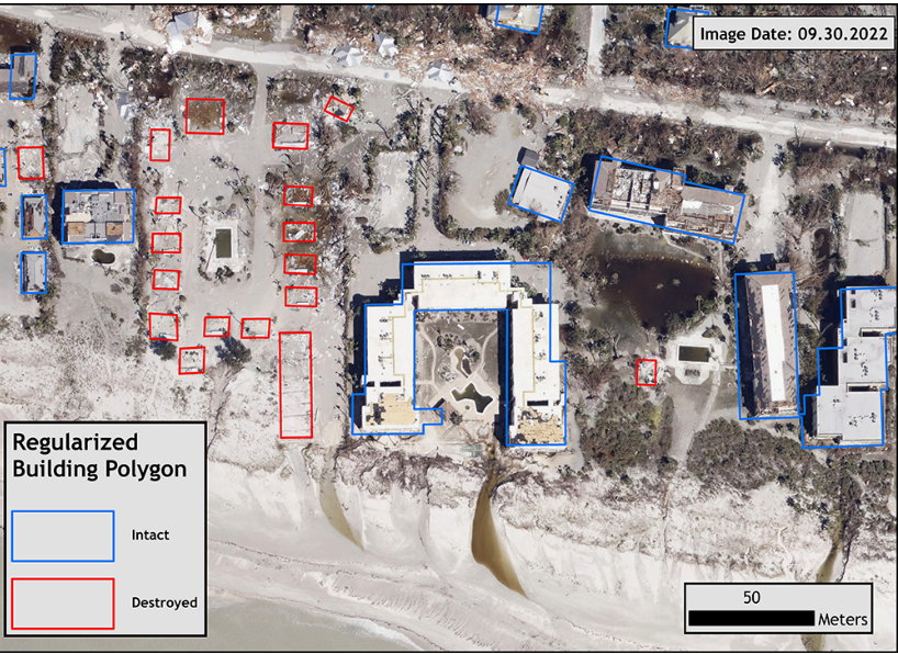 甚至在飓风登陆之前,联邦紧急事务管理局就与能源部橡树岭国家实验室的研究员 Lexie Yang 和她的团队合作,使用 USA Structures 预测潜在损害并加速现场响应,这是一个庞大的数据集。建筑轮廓和属性涵盖超过 1.25 亿个结构。