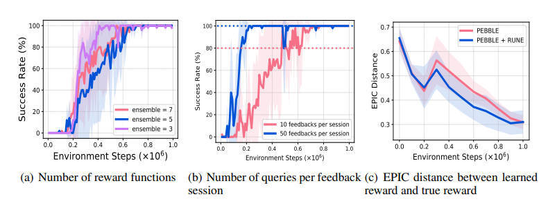 【推荐理由】基于偏好的强化学习( RL )方法能够通过积极地结合人类反馈(即专家在两个行为片段之间的偏好)来学习基于人类偏好的更灵活的奖励模型。然而,在当前基于偏好的 RL 算法中,反馈效率低仍然是一个问题,因为定制的人工反馈非常昂贵。为了处理这个问题,本文提出了一种专门针对基于偏好的 RL 算法的探索方法。此文的主要想法是通过基于学习奖励衡量新颖性来设计内在奖励。具体来说,本文利用学习奖励模型集合中的分歧,学习奖励模型中的分歧反映了量身定制的人类反馈的不确定性,并且可能对探索有用。文中的实验表明,与其他衡量状态访问新颖性的现有探索方法相比,学习奖励的不确定性带来的探索奖励提高了基于偏好的 RL 算法在 MetaWorld 基准中复杂机器人操作任务的反馈和样本效率。