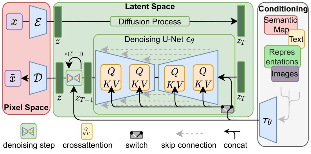 对比传统端到端的深度学习模型,扩散模型的训练过程无疑更为复杂,以 Stable Diffusion 为例,除了扩散模型本身,还有一个 Frozen CLIP Textcoder 来输入 text prompts,以及一个 Autoencoder 实现将高分辨率图像压缩到潜在空间(Latent Space),并在每个 time step 计算 loss。这对训练方案的显存开销,计算速度都提出了更大的挑战。