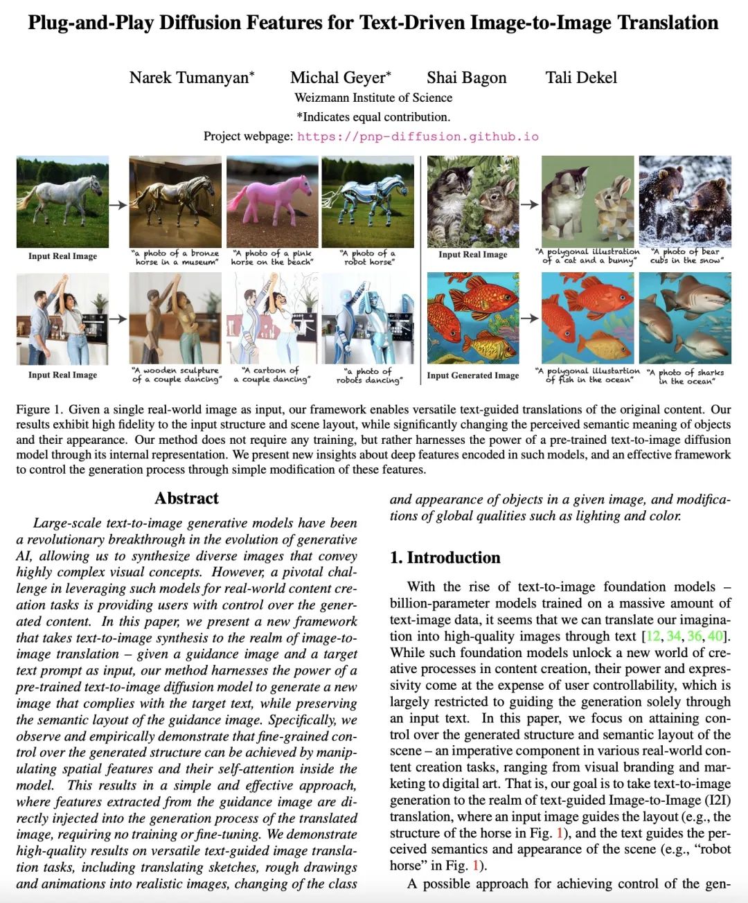[CV] Plug-and-Play Diffusion Features for Text-Driven Image-to-Image Translation