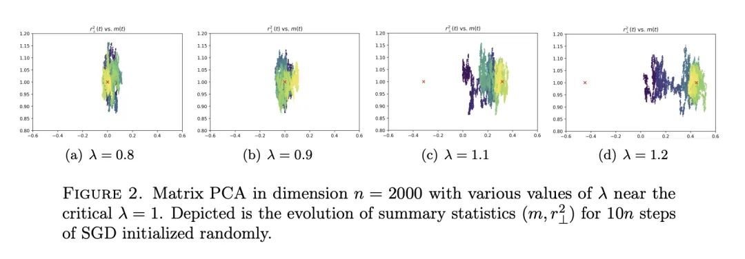 SGD高维极限定理:有效动力学与临界扩展。本文研究了高维系统中步长不变的随机梯度下降(SGD)的扩展极限,证明了SGD的汇总统计(即有限维函数)在维度达到无穷大时的轨迹的极限定理。所提出方法允许选择被跟踪的汇总统计量、初始化和步长。它产生了发射(ODE)和扩散(SDE)两种极限,极限极大地取决于前者的选择。本文展示了步长的一个临界比例机制,在该机制下,有效的发射动力学与群体损失的梯度流相匹配,但在该机制下,一个新的修正项出现,改变了相图。关于这个有效动力学的固定点,相应的扩散极限可能是相当复杂的,甚至是退化的。本文在流行的例子上展示了所提出的方法,包括对尖峰矩阵和张量模型的估计,以及通过两层网络对二元和XOR型高斯混合模型的分类。这些例子表现出令人惊讶的现象,包括收敛的多模态时间尺度,以及从随机(如高斯)初始化中以远离零的概率收敛到次优解。本文证明了过参数化的好处,即随着第二层宽度的增加,后者的概率归零。
