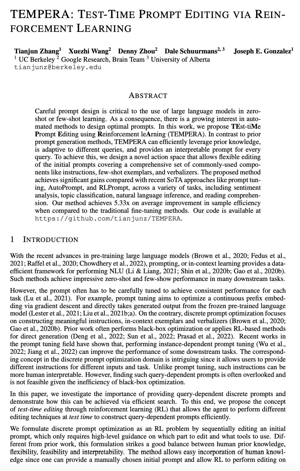 5、[CL] TEMPERA: Test-Time Prompting via Reinforcement Learning
