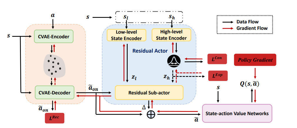【推荐理由】强化学习(RL)被广泛认为是优化长期参与顺序推荐的有前途的框架。然而,由于昂贵的在线交互,RL 算法在优化长期参与时很难执行状态-动作值估计、探索和特征提取。本文提出了 ResAct,它寻求一种接近但优于在线服务的策略。能够在学习到的策略附近收集足够的数据,从而可以正确估计状态-动作值,而无需进行在线探索。由于策略空间巨大,很难直接优化该策略。相反,ResAct 通过首先重建在线行为然后改进它来解决它。本文的主要贡献有四方面。首先,本文设计了一个生成模型,该模型通过对多个动作估计器进行采样来重建在线服务策略的行为。其次,本文设计了一种有效的学习范式来训练可以输出残差以改进动作的残差参与者。第三,本文使用两个信息理论正则化器促进特征的提取,以确认特征的表达性和简洁性。第四,广泛的实验证明本文的方法在各种长期参与优化任务中显著优于最先进的基线。