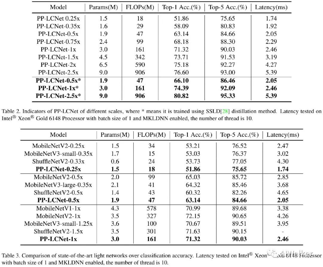 本文提出一种基于MKLDNN加速的轻量CPU模型PP-LCNet,它在多个任务上改善了轻量型模型的性能。本文列举了一些可以提升模型精度且保持延迟几乎不变的技术,基于这些改进,所提PP-LCNet可以凭借同等推理速度大幅超过其他已有网络。