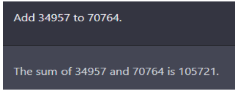 1950年版本的图灵测试是问答形式。图灵在论文中模拟了未来智能计算机的测试,如下图所示的一个算术问题:34957 加 70764 等于多少?