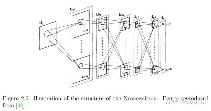 图 2.6:Neocognitron 的结构示意图,图来自 [49]