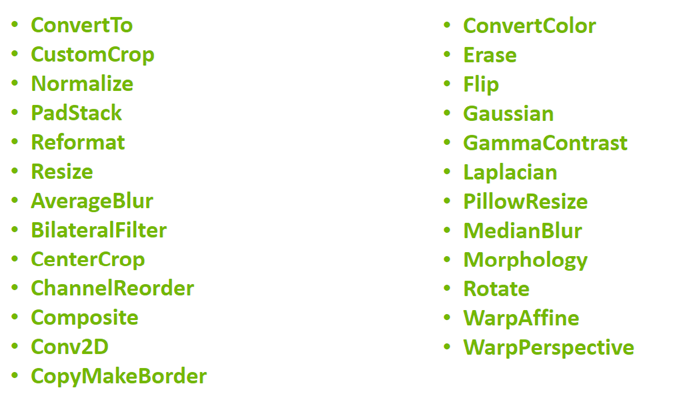 图 4. CV-CUDA 支持算子清单