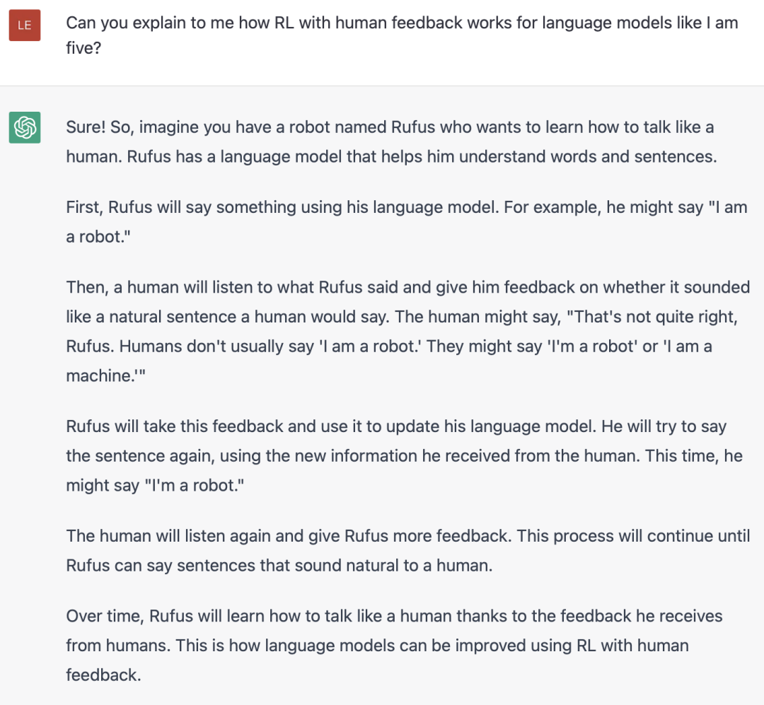 看看 ChatGPT 是如何解释 RLHF 的:
