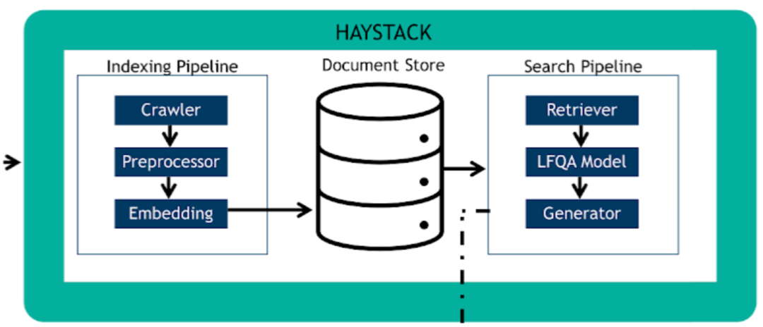 RASA是一个开源的对话机器人框架,在这里,转成文本的用户语音输入会经过基础的NLU模块,进行分词、意图理解、槽位填充等操作,来得到一个结构化的语义理解结果,该结果会被输入到内部的对话管理(DM)模块来进行对话状态的追踪和管理。得到了语义理解的结果,便会将该结果丢给图中最上面的HEYSTACK工作流,来通过答案检索的方式,得到一个适合回答用户的候选回复,该回复最终会传入回RIVA工作流,通过TTS模块生成语音回复。