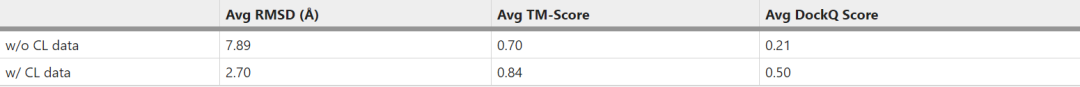 对其他指标的评估进一步证明了在评分中包括共价标记的好处。如表 1所示,在添加 CL 数据后观察到 TM 分数和 DockQ 分数有所改善。TM-score 分析结构之间的拓扑相似性,DockQ是用于评估蛋白质-蛋白质对接数据的质量度量。当在评分中包含共价标记数据时,平均 TM 分数从 0.70 提高到 0.84(高倍相似性的进一步提高),平均 DockQ 分数从 0.21(不正确的结构)提高到 0.50(中等质量结构)。所有得分最高的模型的 TM 分数和 DockQ 分数要么保持不变,要么随着实验数据的增加而提高。这些结果表明,残基共价标记修饰中包含的信息确实可以促进区分原生和非原生姿势。