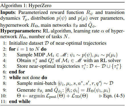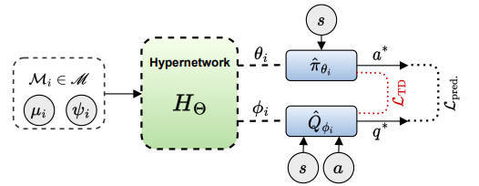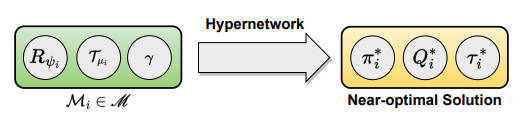 【推荐理由】在本文中,通过基于 TD 的新型训练目标和来自训练任务的一组近乎最优的 RL 解决方案的数据,训练超网络在一系列看不见的任务条件下生成行为。这项工作涉及元 RL、上下文 RL 和迁移学习,特别关注测试时的零样本性能,这是通过了解任务参数(也称为上下文)实现的。本文的技术方法是基于将每个 RL 算法视为从 MDP 细节到接近最优值函数和策略的映射,并寻求使用可以生成接近最优值函数和策略的超网络来近似它,给定参数MDP。本文表明,在某些条件下,这种映射可以被视为监督学习问题。文中凭经验评估了此方法在 DeepMind Control Suite 的一系列连续控制任务上零样本迁移到新奖励和转换动态的有效性。本文的方法展示了多任务和元 RL 方法对基线的显著改进。