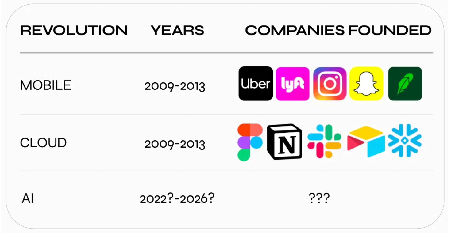 2022 年取得突破的生成式人工智能是自十多年前移动和云计算兴起以来最引人注目的技术。平台层正在固化,我们正目睹着令人兴奋的应用层的萌芽——这些产品有可能成为数十亿人日常生活的一部分。